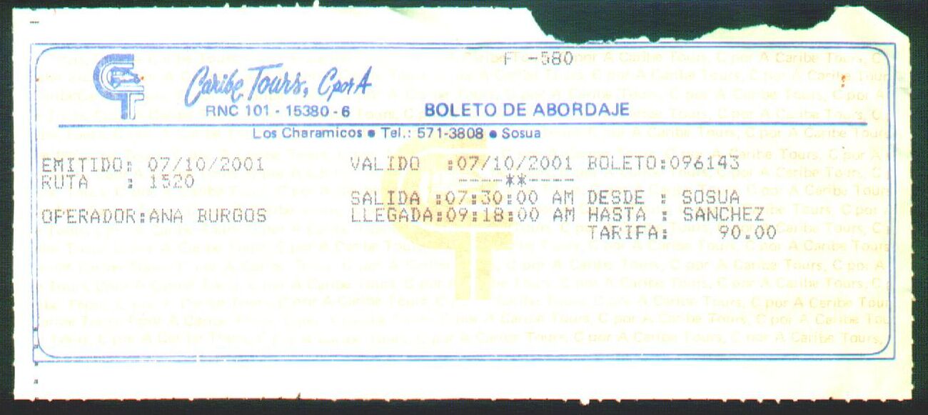![]() Ticket Caribe Tours zeigt Abfahrtszeit und Preis hier: Sosua nach Sanchez |