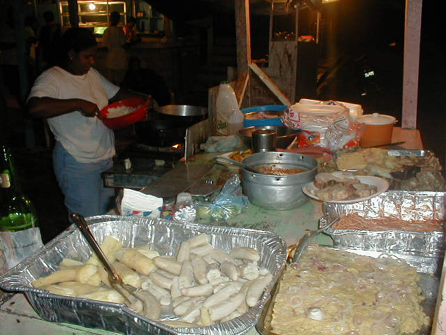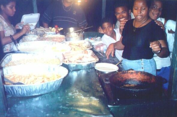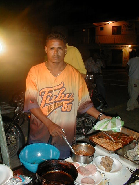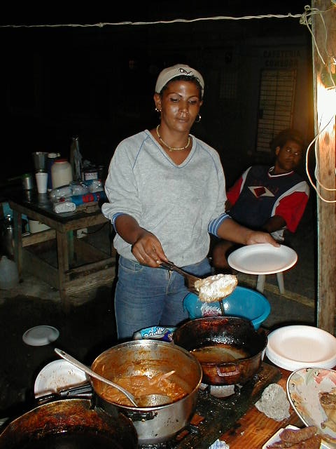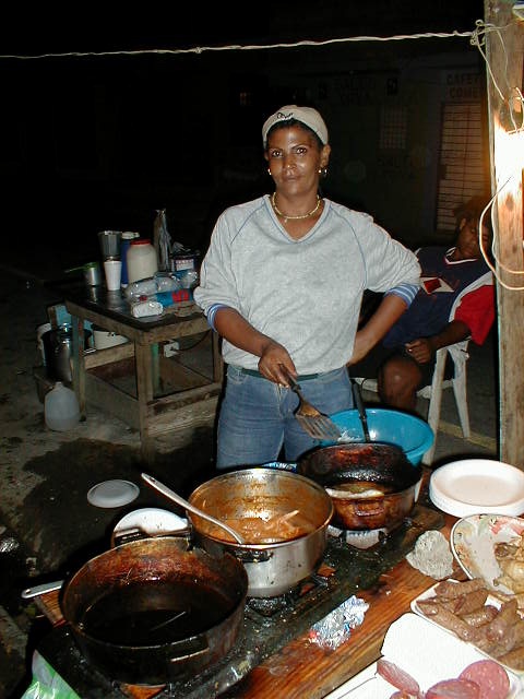 After having danced all night you might be hungry. But even, if you are not: Find out, where the party-people go to have their breakfast. There are fast-food offers in the the street, mostly more than one. It's a meeting point for the people who have been working the whole night. There are girls, waiters, motoconcho drivers and sometimes people like me who know where to go for a kind of after-party. This page shows some photos shot at the desajuno in Los Charamicos. |